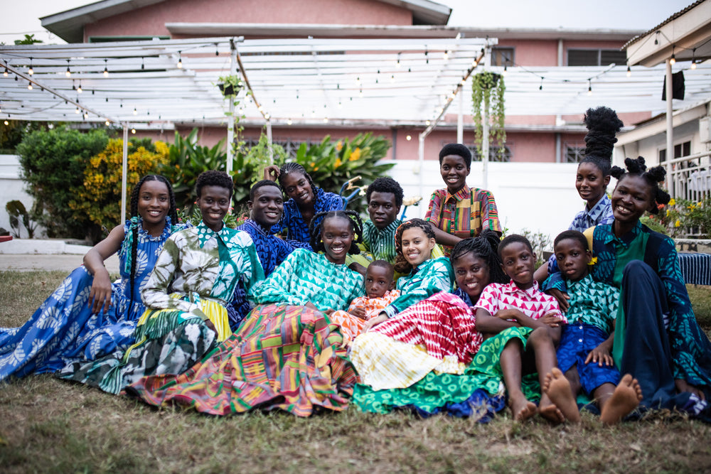 The fabric is meticulously hand-batiked by a Ghanaian artisans which means each garment is a completely unique creation. Hand-batiking is a multi-step, highly personal design that takes 1-2 days per item.